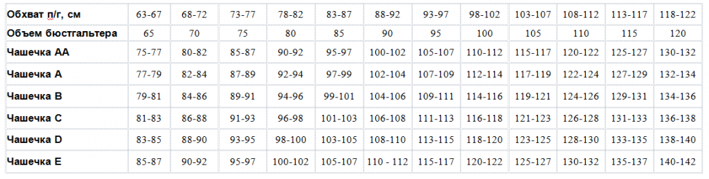 Для определения размера чашки необходимо знать два обхвата: