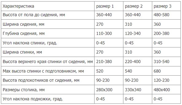 | Максимальный вес пользователя, кг. | 25 | 45 | 70 | 80 |