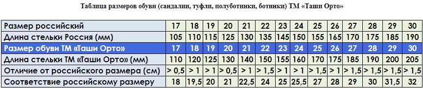 Обувь "Таши Орто" большемерит на размер. При заказе сверяйтесь с размерной таблицей.