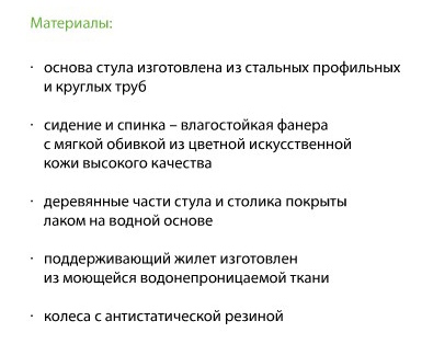 Отклонение спинки стула от вертикали – 0…40 градусов.